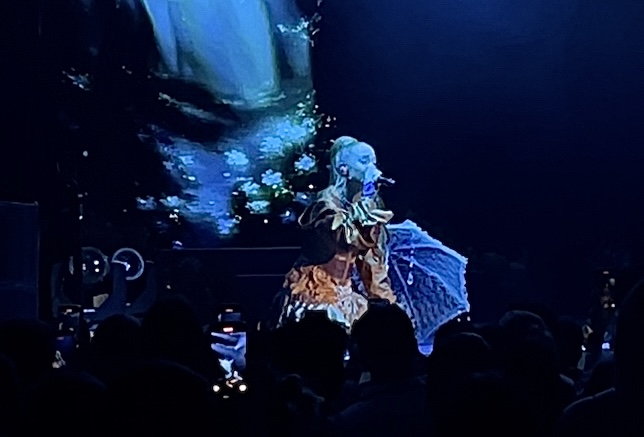 “Oops”, “Luz roja” y “Vértigo” se sucedieron fieles a la cronología del disco. Sentada al fondo sonó “No me olvides”, tal vez el tema más significativo del show. Varios trazos teatrales no solamente se dieron en los monólogos, sino también en una fluida interacción con la voz (en off) de su consciencia interpretada por la actriz (y madre de la cantante) Gloria Carrá. Humberto Maturana sostiene que “fuera de la mente no hay nada”. A vez, la mente solo alberga pasado y futuro. En éste combate interno la artista se bate a duelo consigo misma. Con vista hacia el pasado interpretó “Arrabalera”, que hace mención a su abuela Lolita Torres y a su costado más íntimo. Algunos hits también llegaron para llevar la energía hacia el polo de la celebración con “La vida en rosa”, “Guapo”, “Flotando” y el reciente cover “Que ganas de no verte nunca más”. Reiteradas veces describió al ‘mounstrito’ que todos llevamos dentro, percibiéndose como “una bomba atómica de soledad asegurada”.