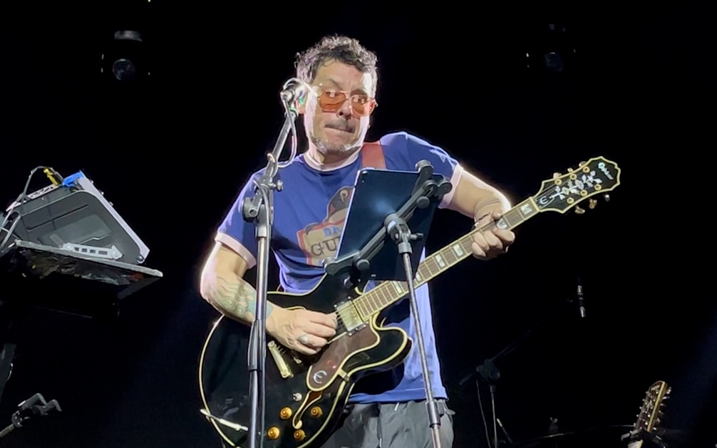 “Tu mundo” fue la que dio inicio a un extenso viaje de dos horas y cuarto, donde el artista arremetió con una propuesta abismalmente apartada del estándar, y el público rosarino se entregó por completo a lo que manaba del escenario. Un look sin pretensiones, de remera blanca, pantalones holgados y gafas de color miel anaranjado vistieron al cantante. Versiones que rondaban los diez minutos alcanzaba cada tema, habiendo logrado desde el comienzo que el tiempo se vuelva imperceptible. “¿Cómo voy a hacer para ser más libre?”, se indagó el músico durante “Señal I” en teclados y guitarra, produciendo en simultáneo los efectos de sonido como en cada tema. Así sucedieron “Para vestirte hoy” y “Green lover”, dejando ver formas estampadas en el blanco fondo. “Tu nombre y el mío” y “La última prosa”, se perfilaron para ser las más cantadas de la noche por un público rosarino que dista de ser meramente contemplativo. En contraposición al pasaje deep de “Sombra I”, un halo de luz afloró en escena con la bossa nova “Blue”.