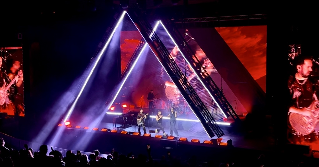 El amor y el desamor son transversales a toda generación musical, trascienden modas y tendencias, y siempre tocan una fibra sensible. Lo que va mutando son los sonidos, formatos y maneras de manifestarlo, y Camila ha dejado una huella en el soundtrack romántico de la existencia de quienes hayan transitado los dosmiles en cualquier etapa de su vida. Muchas de esas melodías resonaron por todo el Parque Urquiza en un fresco domingo de Día de la Madre. Ilustrando lo opiáceo, lo bucólico y el ideal del amor romántico, o desmenuzando el desamor de la forma más explícita, Camila conquistó en directo a las miles de personas que colmaron el Anfiteatro. Con destacable profesionalismo y una encomiable capacidad vocal que mantienen intactas sus canciones, los mexicanos brillaron sin pretensiones ni exuberancia, y acompañados de una puesta ambiciosa. En un caleidoscopio de triángulos luminosos que culminaban en la inmensa pantalla del fondo, el escenario simuló ser un portal policromático que combinó estética y movimiento con tecnología de última generación.
