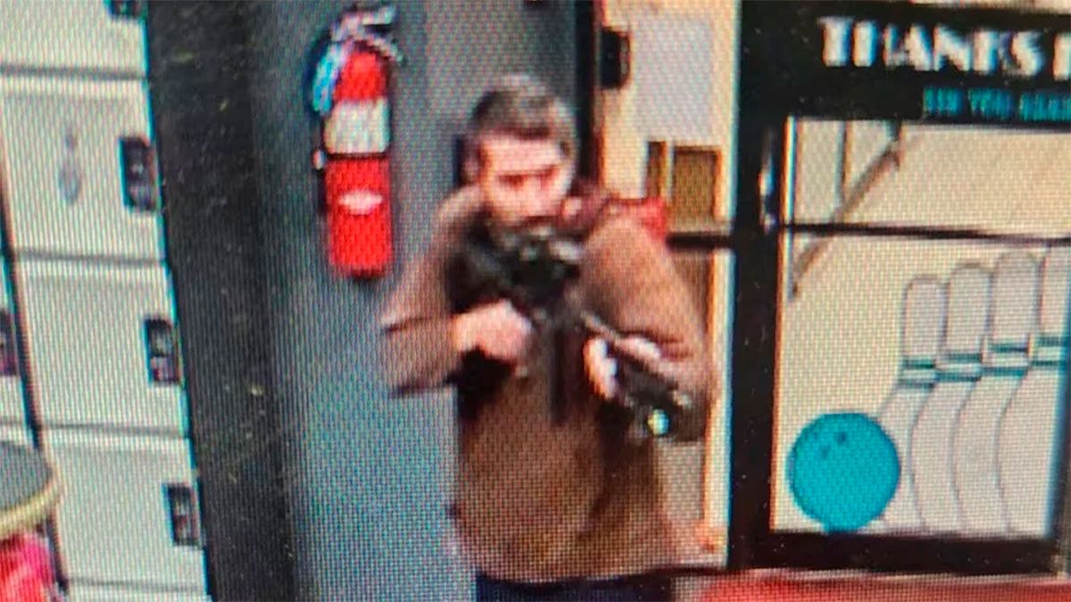 Una fotografía difundida por la policía mostró a un hombre vestido con una camiseta marrón entrando al establecimiento, con un rifle semiautomático al hombro.