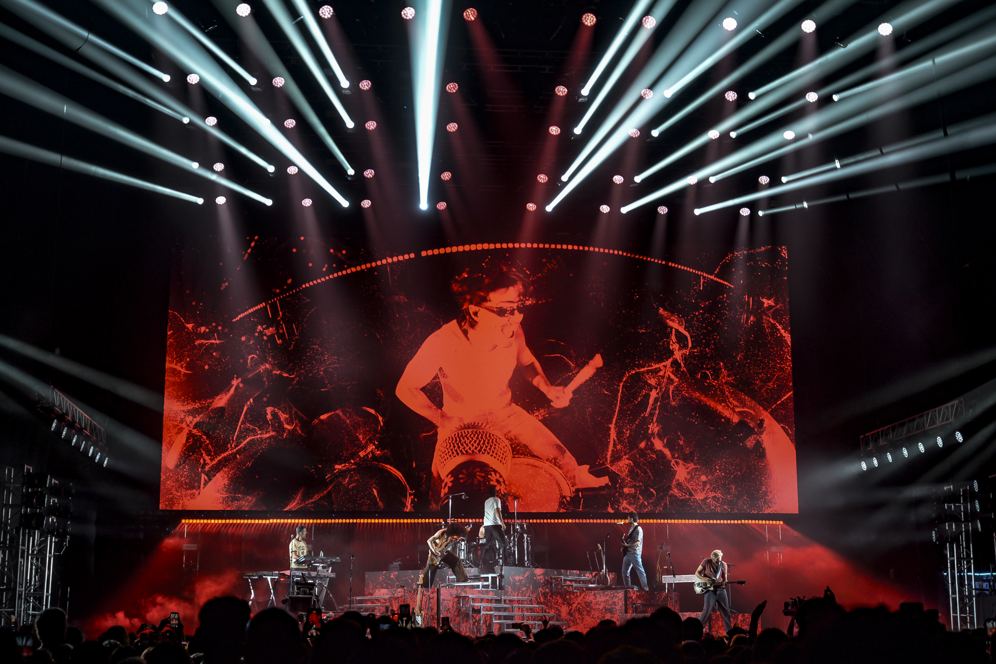 Todos tenemos ‘asuntos pendientes’, y el de Morat era visitar Rosario. Con una prolífica carrera y varios hitos consagratorios alrededor del mundo, ningún artista internacional puede privarse de visitar una de las plazas musicales más destacadas de Latinoamérica. El público rosarino es particularmente fervoroso y demostró en éstas dos noches ser particularmente sentimental. Las miles de almas que colmaron Metropolitano, cantaron cada tema a gritos desgarradores, dejando rodar las lágrimas sin pudor, sin privarse de bailar y hasta de un medido pogo en acotados momentos. La banda colombiana produce ese entusiasmo, desde un cuidado profesionalismo que los hace sonar de manera impoluta en directo, de forma fidedigna a sus discos. Con un opulento juego de luces, una inmensa pantalla por lo alto acaparando cada extremo y otras dos al costado transmitiendo el show, el escenario se completaba con un juego de tarimas y plataformas recubiertas en pantalla que generaban una efecto tridimensional, produciendo diferentes ilusiones ópticas como si por momentos los artistas estuviesen suspendidos en el aire.