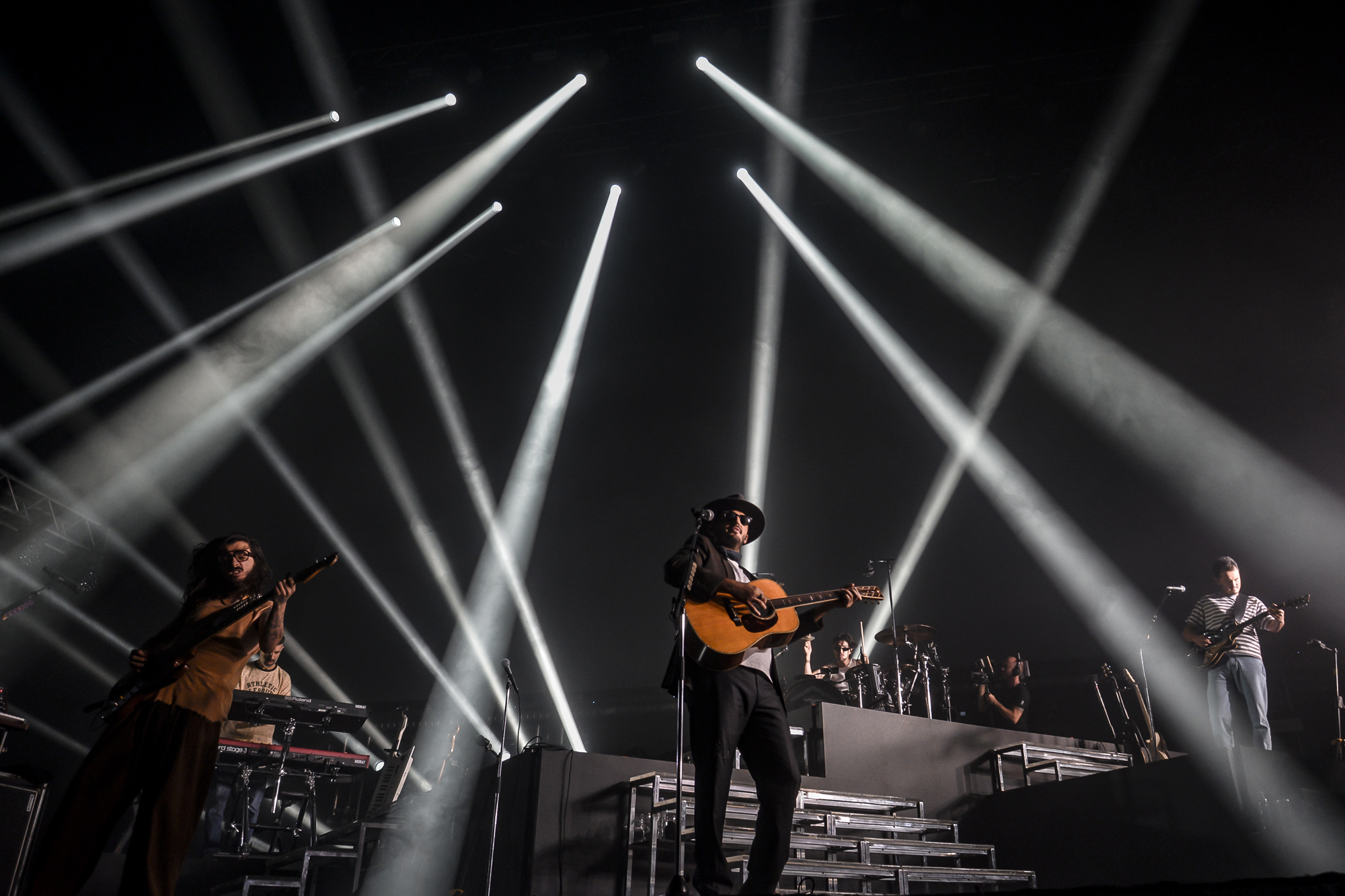 A las 21:03, con puntualidad casi prusiana, Morat no tardó en aparecer por lo alto del escenario. Seis hábiles músicos, fórmula más que acertado para una experiencia sonora con toda la potencia, amalgamada con una estética fuera de serie. Un breve preludio dió paso a “Faltas tú”, elegida para comenzar y muy celebrada por la gente. La armonía, conexión y prolijidad de las voces amalgamadas al unísono ya se percibía desde el primer estribillo, consolidando la esencia del sonido Morat. Ya desde abajo u al frente, con el escenario teñido de rojo sonó “Cómo te atreves”, en un guiño al primer disco. “506” y “A dónde vamos”, sostuvieron un clima más animado, con lluvia de largas serpentinas blancas mediante. Las primeras lágrimas no tardaron en salir con canciones como “Me toca a mí”, “Porfa no te vayas” y la desgarradora “Segundos platos”. Clásicos como “Cuando nadie ve” tampoco faltaron para mixturar entre tantas pulsiones emocionales que se encuentran en un mismo show, conviven y salen a la luz produciendo un soplo de satisfacción.