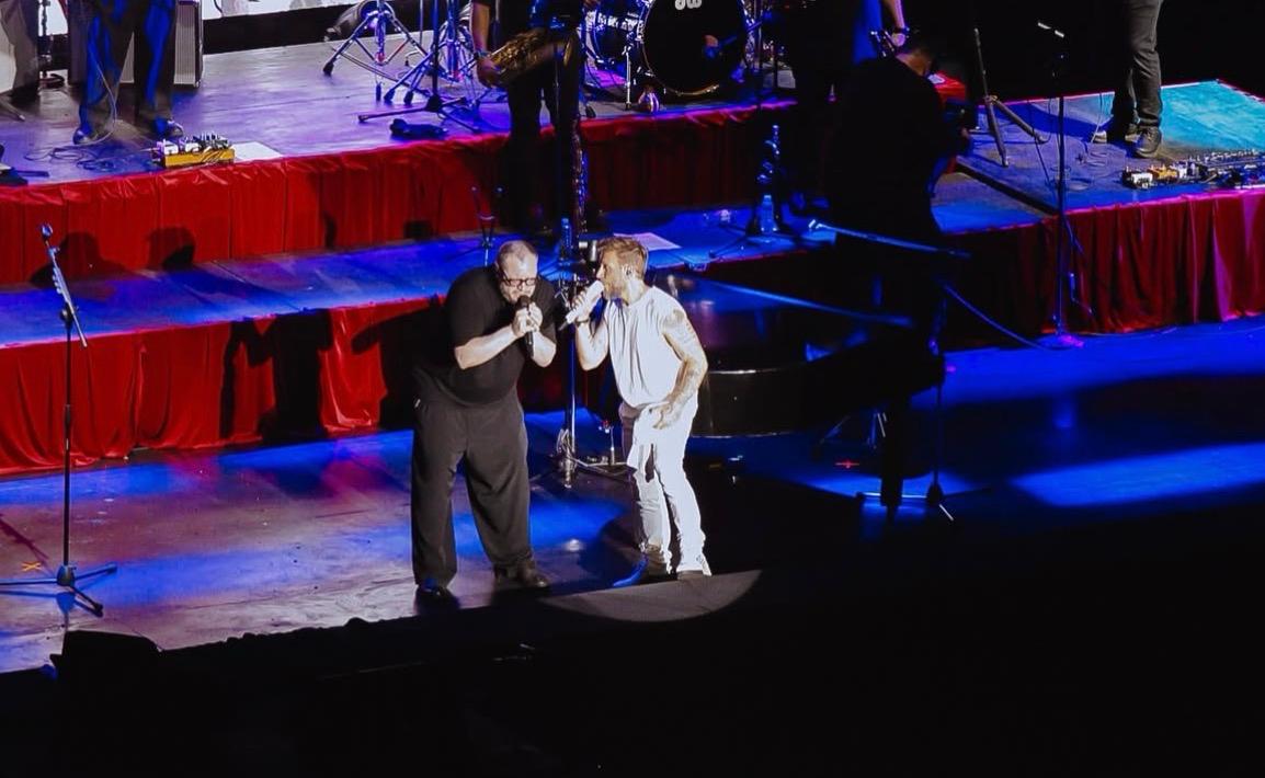 Noel Schajris interactuó con la gente de modo más directa, como cuando propició la propuesta de matrimonio en “Dime que si”. De la misma forma el cantante trepó los parlantes laterales del escenario para cumplir el deseo de una fan que pidió un abrazo a través de un cartel luminoso. “A todas las mujeres de nuestra vida. Su lenguaje nos enseña mejor cómo vivir”, dedicaron “ABC” seguida por la recordada “Amor real”, donde se tomaron su tiempo para presentar a la orquesta como lo merecen. Así se escucharon “Ahora sé”, “Y llegaste tú”, con un brío jazzero y “A ti”. En la pantalla que acaparaba todo el fondo del escenario se transmitía el show con planos detalle a los cantantes y a la banda en tonos grises y en sepia. También hubo lugar para temas recién estrenados como “Nunca” y “¿Qué culpa tiene ella?”. Acto seguido, en la penumbra del escenario interpretaron “Si tú no estás aquí”, cover del disco ‘Pasado’, dando pie al momento de mayor intimidad con su público, en una excepcional fusión de piano y voces en “Ves”.